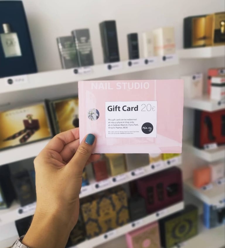 REDEEMABLE AT PERFUME STORE IN PAPHOS OR VALID FOR ANY PROCEDURE AT PURE WHITE NAIL STUDIO. VALID 6 MONTHS AFTER PURCHASE DATE.